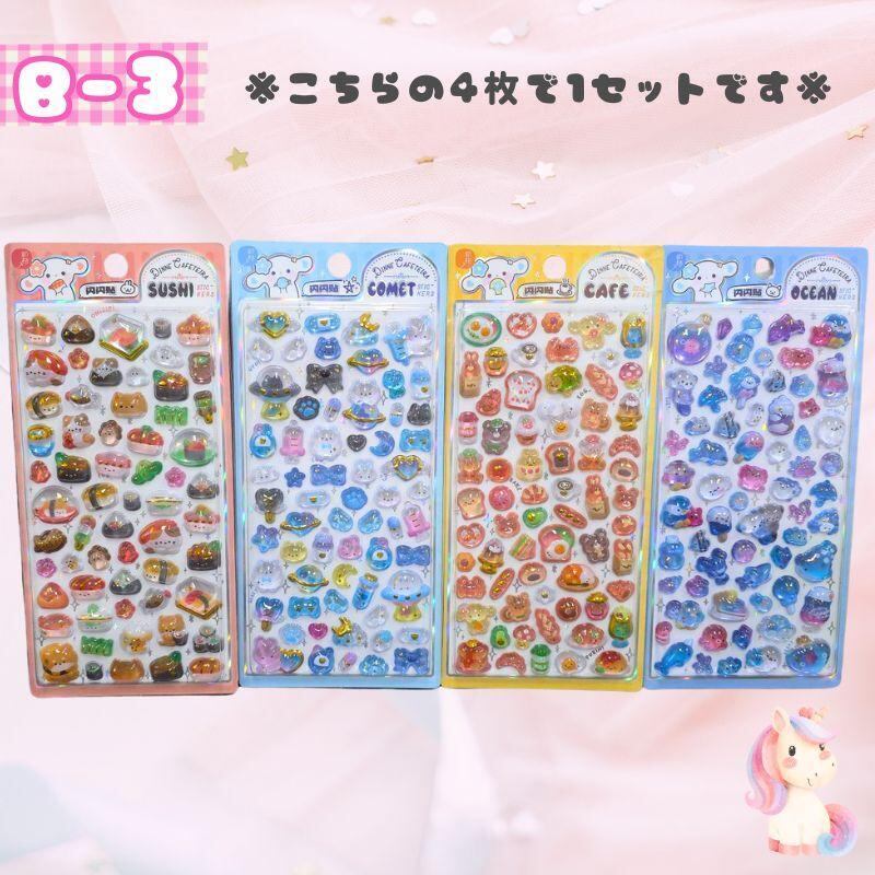 凹凸を再現した3Dステッカー。触って楽しく、見た目にも奥行きのあるデザインで、キュートでトレンド感のあるキャラクターがたくさんいます。自分だけの個性を演出するのに最適です。